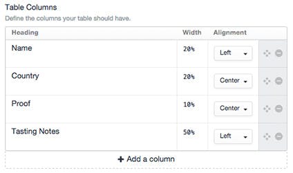 A field type that enables your users to create their own columns, controlling the width and alignment of each.