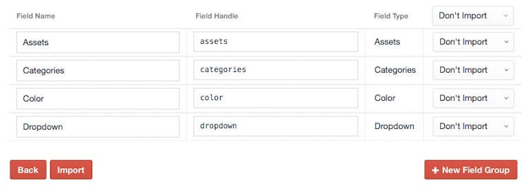 Select multiple fields, or entire groups of fields to export, handy to save for later, or quickly add fields to your staging or production site.