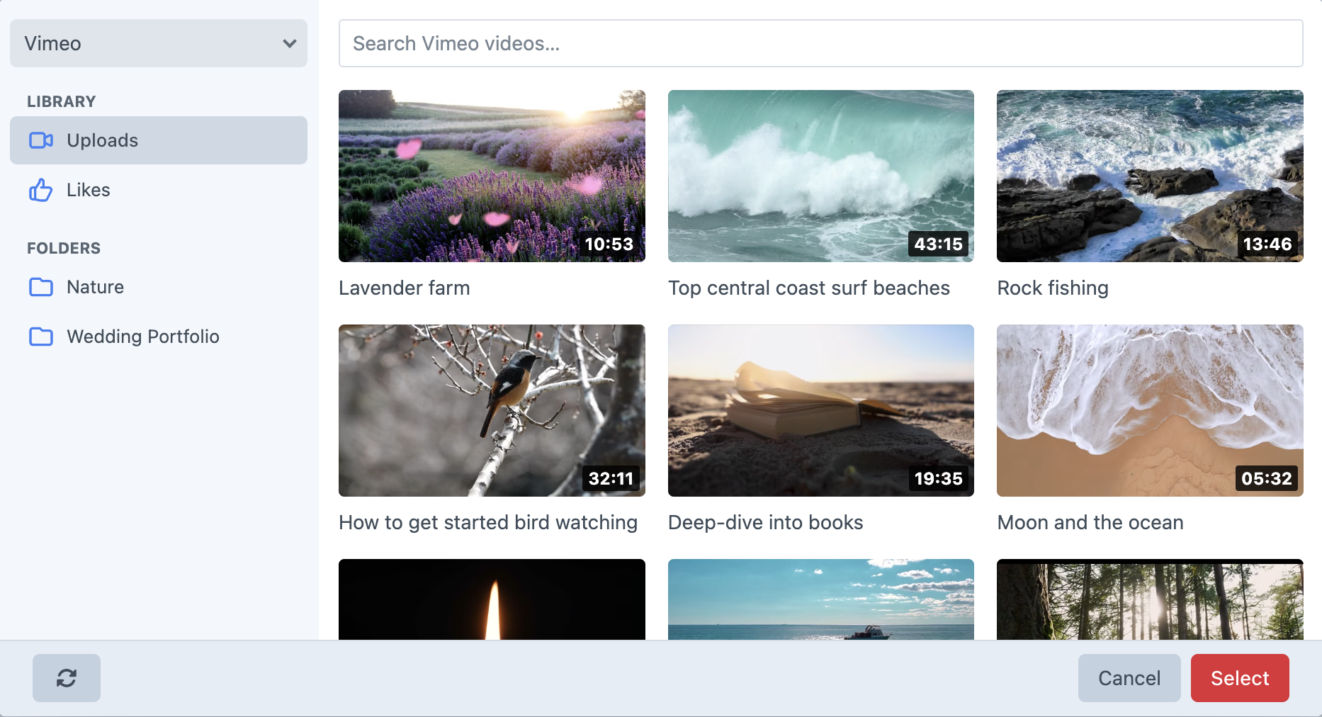 Connect to YouTube, Vimeo and more to fetch your videos. With multiple source support, you can of even pull in videos from multiple sources.