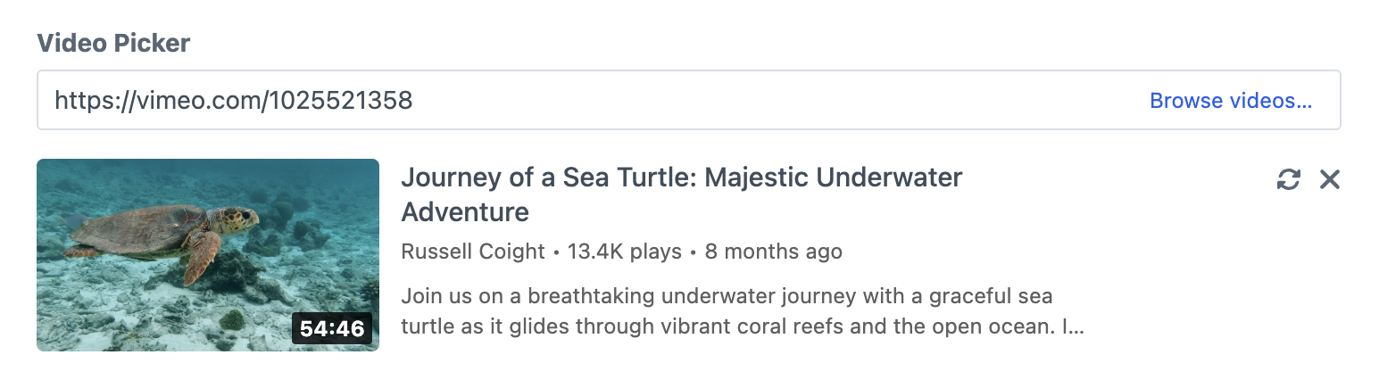 A slick field to pick video from. Supports YouTube, Vimeo and more.
